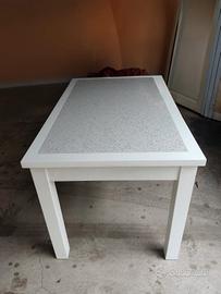 tavolo da cucina con marmo bianco misura 130 x 80 allungabile diventa 170 cm con piccoli maccature sulle gambe del tavolo