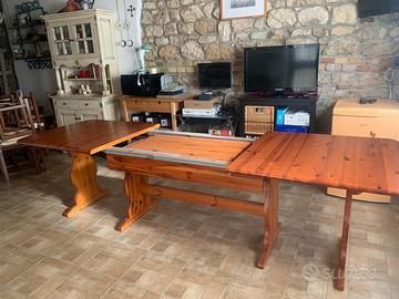 Splendido tavolo da cucina in legno massello, ideale per tavolate numerose. Il tavolo è praticamente nuovo, come si vede molto bene dalle foto. Misura 190x90 cm chiuso e 370x90 cm allungato. Il prezzo è trattabile. Ritiro e trasporto esclusivamente a carico dell'acquirente.