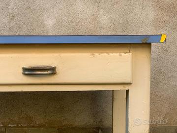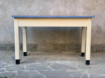Vendo tavolo da cucina in legno verniciato con ripiano in formica azzurra. Dimensioni 70x128 cm e altezza 75 cm.