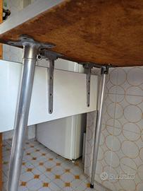 Vendo bellissimo tavolo da cucina anni 50/60 in formica e struttura in acciaio con particolarissimo sistema di ribalta a baglionetta delle sponde laterali.