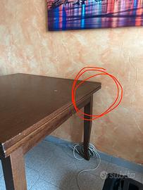 Tavolo antico da cucina in legno, apribile fini a 6 posti. Univo problema è leggermente instabile perciò appoggiato al muro in foto, da aggiustare gamba (cerchiata in foto).