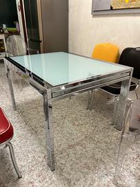 Vendo tavolo da cucina cromato in acciaio con vetro satinato temperato come nuovo misure: 1.20x 90 allungabile fino a 2.40.
