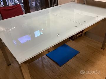 Importante tavolo da cucina in vetro e acciao, perfettamente tenuto, 160x90 chiuso 200x90 caperto