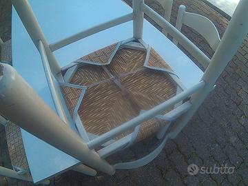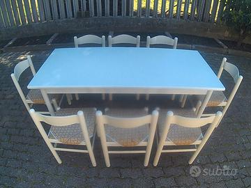 Tavolo da cucina estendibile in legno laminato bianco misure 180-220/80 con n.8 sedie in legno bianco con seduta in paglia e copriseduta in paglia. Vendo in blocco. No messaggi solo contatto telefonico al 3803339956