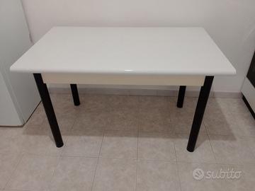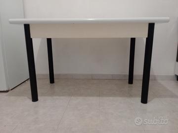 Robusto tavolo da cucina con piano in laminato spessore cm. 4 colore "sale e pepe" con telaio in multistrato cm. 2 e piedi in metallo colore nero, lunghezza cm. 130 allungabile di altri cm. 40, larghezza cm. 80, altezza cm. 80. Come nuovo