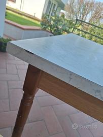 Tavolo da cucina, in legno rovere con ripiano chiaro.