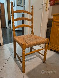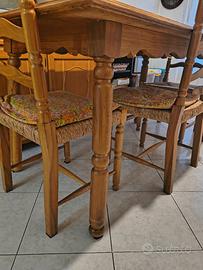 vendo tavolo da cucina (80x160) con 6 sedie abbinare impagliate (impagliatura rifatta 15 anni fa, ancora perfetta). la struttura di tavolo e sedie è solidissima. il piano del tavolo è un po' rovinato ma nulla che ne rovini la solidità.
