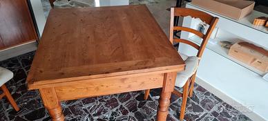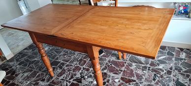 Tavolo antico in legno restaurato qualche anno fà in ottime condizioni con 6 sedie rimpagliate in altrettanto ottime condizioni.