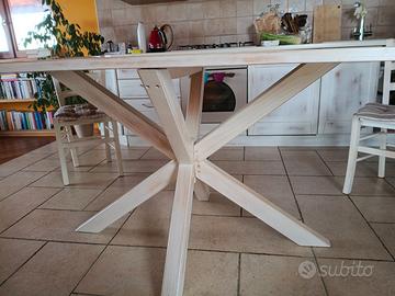 Tavolo da cucina in legno sbiancato ma che lascia intravedere il colore del legno, costruito artigianalmente, misura 160x90, 4 sedie dello stesso colore (eventuali cuscini gratuiti)