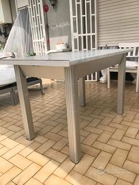 Vendo tavolo da cucina estendibile Misure: 75 x 120 chiuso 75 x 160 aperto Base in alluminio anotizzato Piano in laminato bianco Carrara Ditta: Veneta Cucine
