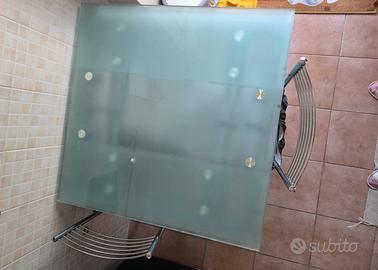 Vendo tavolo da cucina di alta qualità, in vetro satinato temperato spesso e pesante, con struttura in metallo cromato.