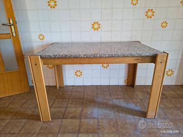 TAVOLO DA CUCINA LEGNO CON PIANO DI MARMO 120CM CO