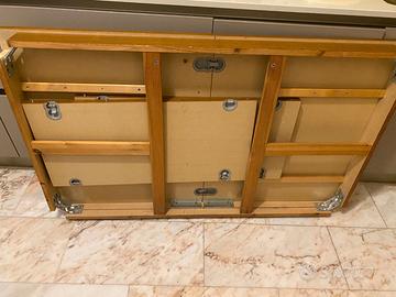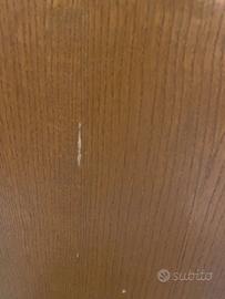 Tavolo da cucina in legno scuro dimensione 140 x 80 cm allungabile a 180 cm. In buone condizioni, presenta una gamba rovinata su un interno come da foto e piccoli difetti nel range del mm. Tali difetti non sono visibili quanto il tavolo è montato poiché nel lato interno del tavolo. Viene consegnato smontato cosi come presente nelle foto. Solo ritiro in presenza presso città studi.