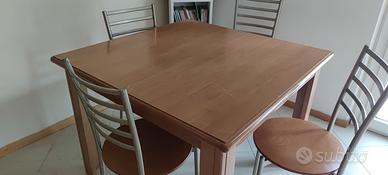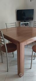 Tavolo da 4 posti, l'estensione da la possibilità di aggiungere altri posti. Ha un difetto : il primo strato di lucido si stacca, sotto compare il secondo strato di lucido