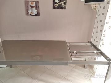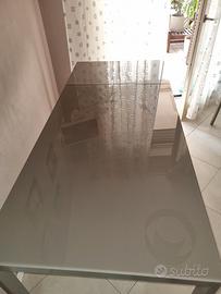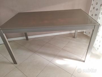 Tavolo da cucina con base in vetro temperato e struttura in metallo lungo 140 cm largo 85 cm alto 75 cm allungabile fino a 190 cm (qualche graffietto nelle gambe del tavolo)