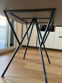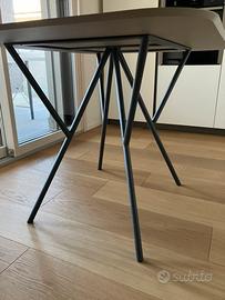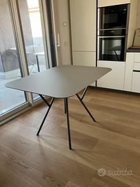 Tavolo 120 x 90 fatto su misura. Piano con angoli arrotondati in melaminico grigio sabbia e gambe in ferro fatte a mano dal fabbro , grigio antracite , tipo Bontempi Barone.