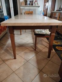Tavolo da cucina allungabile usato ma in ottime condizioni CM 160x90 chiuso e cm 200 aperto , struttura in noce piano in laminato spessore CM 4 ,più 4 sedie in noce con seduta in cuoio.(Prezzo poco trattabile vendo anche separatamente, sedie euro 20 cadauna,ritiro a carico dell'acquirente presso mio domicilio, non faccio spedizioni ne consegna, se non siete interessati evitate di scrivere così non perdiamo tempo in due, grazie.)