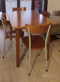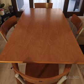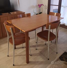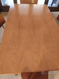 Tavolo da cucina in legno color noce naturale, in ottime condizioni, completo di 6 sedie coordinate. Il tavolo ha una struttura solida con gambe in legno e piano resistente, ideale per l’uso quotidiano. Le sedie hanno seduta e schienale in legno con struttura in metallo, comode e stabili. ✔️ Colore: legno effetto Noce naturale ✔️ Posti: 6 persone ✔️ Condizioni: molto buone, ben tenuto ✔️ Stile semplice e moderno, adatto a qualsiasi ambiente 👉 Possibilità di acquistare anche solo il tavolo (senza sedie). Perfetto per cucina, sala da pranzo o casa vacanze. Misure Tavolo 125x75 cm; allungo di 40 cm. Comodo per 4 pax da chiuso, 6 pax quando esteso. Disponibile solo per ritiro a domicilio Prezzo trattabile