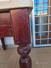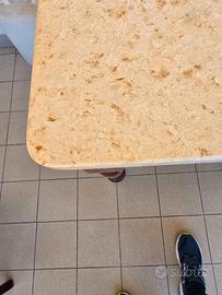 Robusto tavolo da cucina in marmo egiziano con cassetto, fatto in legno di rovere dal falegname. Tinta in decapè. Misure: altezza 80cm, larghezza marmo 75 cm, lunghezza marmo 92 cm, spessore marmo 3 cm. Regalo 2 sedie in ottimo stato. Consegna solo a mano a Roma nord.