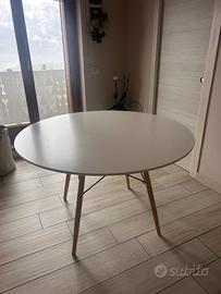 Tavolo da cucina rotondo diametro 120 cm, colore bianco con gambe in legno e ferro.
