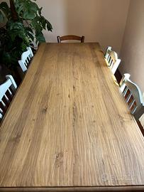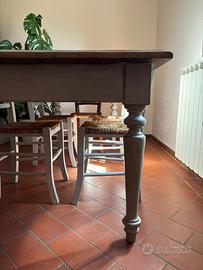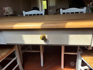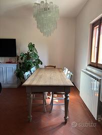 Vendo bellissimo tavolo da pranzo in legno massello, stile rustico/country con finitura shabby chic. • Piano: Legno naturale chiaro con venature a vista, trattato e protetto • Struttura e gambe: Laccate grigio chiaro/antracite con effetto decapato volutamente anticato • Stile: Perfetto per cucina, sala da pranzo, casale o taverna. • Dimensioni: [Aggiungi 90x 200x 80 in cm] • Posti: Comodo per 8 persone • Condizioni: Ottime, usato e tenuto con cura.