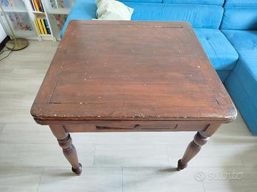Tavolo allungabile in buone condizioni, pratico e funzionale, ideale per ogni ambiente. Da chiuso misura 90 x 90 cm, perfetto per l’uso quotidiano e per spazi più contenuti. All’occorrenza si allunga facilmente fino a 165 cm, offrendo più posti a tavola per ospiti o occasioni speciali. ritiro a mano, spese di trasporto a carico dell'acquirente Struttura solida e stabile, design semplice e versatile che si adatta a diversi stili di arredamento. Perfetto per cucina o sala da pranzo.