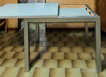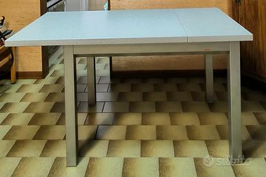 Tavolo da cucina SCAVOLINI, come nuovo, 79 h. x 70 p. x 110 l., con prolunga retraibile da 40 cm (apertura massima 150 cm di lunghezza). Piano in laminato con piedi in metallo. Il ritiro è a carico dell'acquirente.