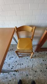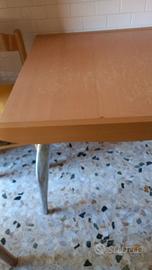 Robusto tavolo da cucina in legno e struttura in acciaio, color miele, allargabile. Dimensioni 90x90 Eventualmente sono disponibili 4 sedie impagliate stesso colore