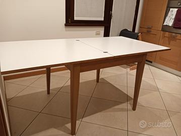 tavolo da cucina 90x90 cm con apertura a libro estensibile fino a 90x180 cm. Piano tinta bianco latte e struttura in rovere