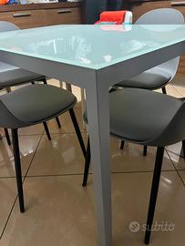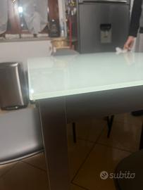 Tavolo da cucina in vetro temperato con struttura in acciacio. 6 persone, misure 120x80. Unico difetto vetro leggermente scheggiato nell’ angolo