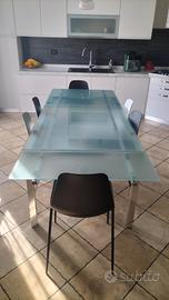 tavolo in cristallo buone condizioni misure lunghezza 1,60 larghezza 90. allungabile fino a 2,40 cm con due prolunghe da 40 cm cadauna. con struttura e gambe in acciaio.