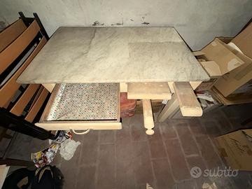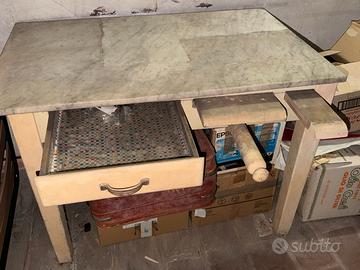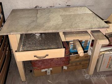 Vendo tavolo da cucina vintage con piano in marmo originale e struttura in legno completa di cassetti e dettagli tradizionali quali matterello, piano per la stesura della pasta fatta in casa etc.