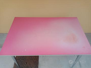 Vendo tavolo anni 50/60 in formica con gambe in ferro cromato in condizioni vissute. Il ripiano è scolorito e presenta qualche macchia. Anche le gambe hanno delle macchioline di ruggine. Dimensioni 70x110x 80h.