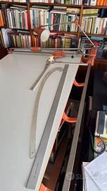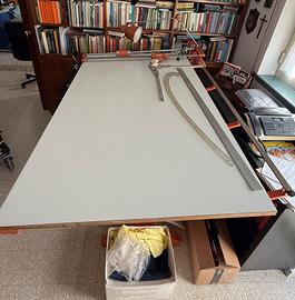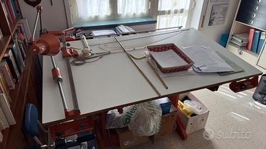 Vendo tavolo da disegno professionale completo di tecnigrafo Zucor Export, ideale per disegno tecnico, architettura o arredamento vintage/industriale. Dimensioni tavola: 170x100 cm Il tavolo è robusto e regolabile in inclinazione, mentre il tecnigrafo è perfettamente funzionante, con movimenti fluidi e precisi e lampada regolabile. Buone condizioni generali, con normali segni d’uso dovuti al tempo. Solo ritiro a mano a Napoli, zona Fuorigrotta.