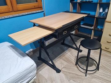 Tavolo da disegno inclinabile, con sgabello.
