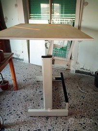 Tavolo da disegno per artisti disegnatori ed architetti, struttura in metallo verniciato bianco in perfetto stato. Il piano è reclinabile ed in basso ha una pedana d'appoggio con pedale per orientare il piano.
