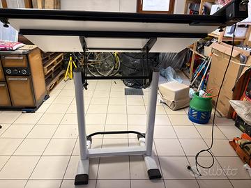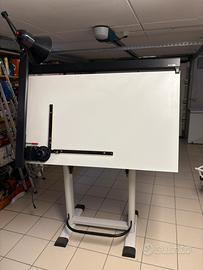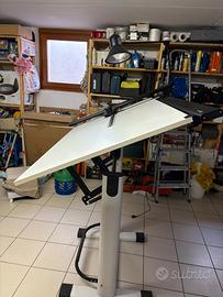 Tavolo da disegno professionale 1985, regolazione altezza e inclinazione, completo di squadra, lampada e sedia misure90x140 h175 90x140 h100-170