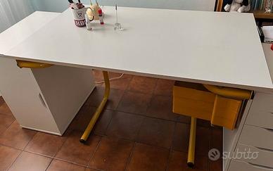Versatile tavolo da disegno disegnato dal rinomato Joe Colombo per Bieffeplast originale. La parte superiore può essere posizionata in 4 diverse angolazioni. Piano di laminato su base di tubi d'acciaio laccati in smalto giallo e 3 cassetti girevoli in plastica.