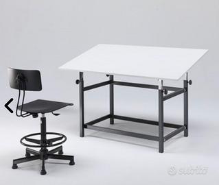 Tavolo da disegno e laboratorio, elevazione ed inclinazione regolabili con sistema telescopico, bloccaggio a volantini.