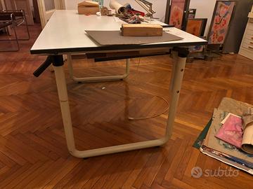 Grande tavolo da disegnatore 140 x 80 regolabile in altezza con manopole su ogni gambe e ripiano fisso.