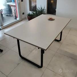 Tavolo da disegno professionale "Architetto Neolt" regolabile in altezza, moderno, con gambe tubolare in metallo nero e tavolo bianco (solo un pò rovinato nel bordo, vedi foto). Il tavolo non è l'originale, questo l'ho messo io per avere una superficie più grande, ma ho anche il tavolo bianco originale che è un pò più piccolo. Made in Italy. Il tavolo si può alzare ed inclicare in tutte 4 le gambe. Secondo ripiano per archivio sotto al tavolo. Inclinazione massima: 30° circa. CONSEGNA: Vendo a chi può fare il ritiro da me, io non ho possibilità di portarlo. PREZZO TRATTABILE. Colore: Bianco Materiale Metallo: Misure Larghezza: 160 cm Altezza: 78 cm Profondità: 100 cm