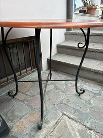 Tavolo da esterno/veranda con telaio in ferro e Piano legno in buono stato, da pulire