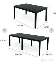 Vendo bellissimo tavolo da esterno allungabile, misure da 150x90x72 a 220x90x72 color antracite. Il ripiano simula delle tavole di legno.