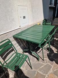 Tavolo da esterno colore verde con 6 sedie e relativa prolunga