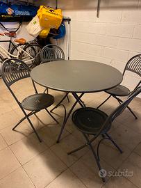 Tavolo tondo da esterno in ferro colore grigio con 4 sedie. Si chiudono sia le sedie che il tavolo ( misura diametro circonferenza 104)