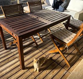 Tavolo pieghevole Ikea da esterno (aperto per 8 persone) con 4 sedie con cuscino da esterno.
