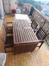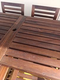risparmiare spazio quando non sono necessarie, ma le puoi aprire all’occorrenza per aumentare la superficie del tavolo. Il foro centrale serve a tenere fermo l’ombrellone.