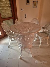 Tavolo in ghisa da esterno rotondo colore bianco con 4 sedie in perfette condizioni