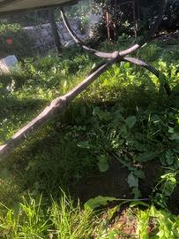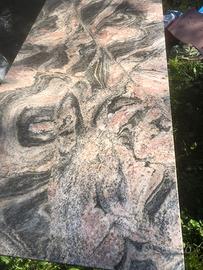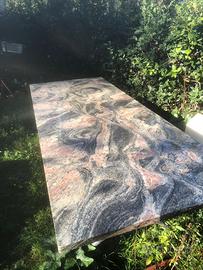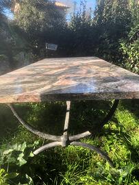 -Tavolo da Esterno -Lastra in Granito Kinawa Rosa/Grigio alta 3cm -Sostegno e gambi in Ferro Battuto e Zincato -Misure: 85x200x75