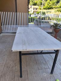 Fatto su misura da fabbro con struttura portante in ferro. Pietra in travertino ascolano spessore 10 cm.
